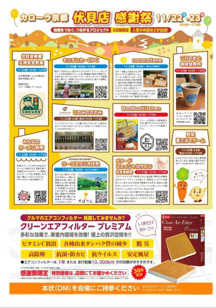 この度、カローラ京都伏見店 感謝祭に出店させていただくことになりました。